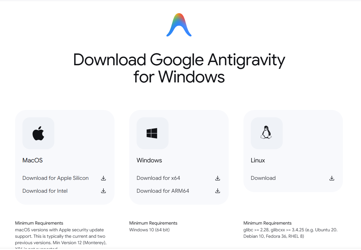 ブラウザで https://antigravity.google/ にアクセス
