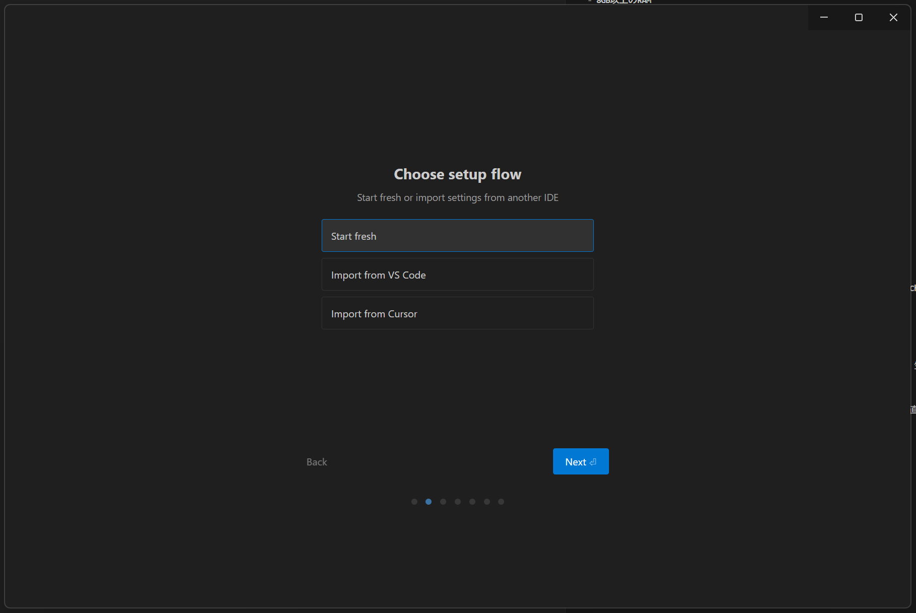 推奨: 初めての方は「Start fresh」を選択して「Next」をクリック