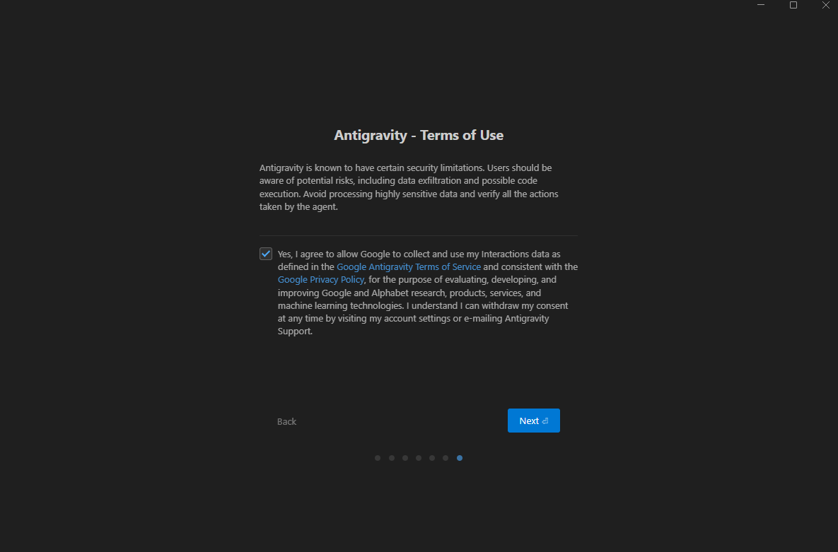 Antigravityを初めて起動すると、セットアップウィザードが表示されます。