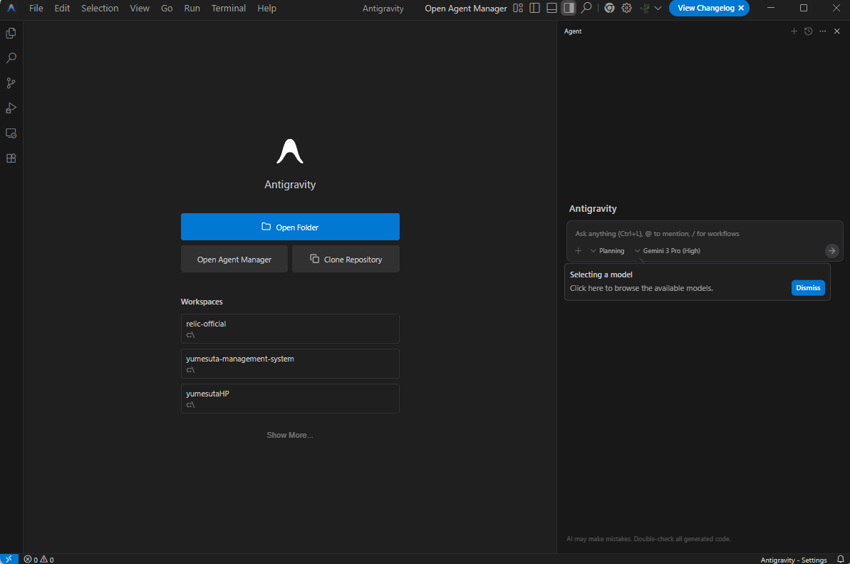 - Antigravityが「エージェント・ファースト」のツールであることを理解した