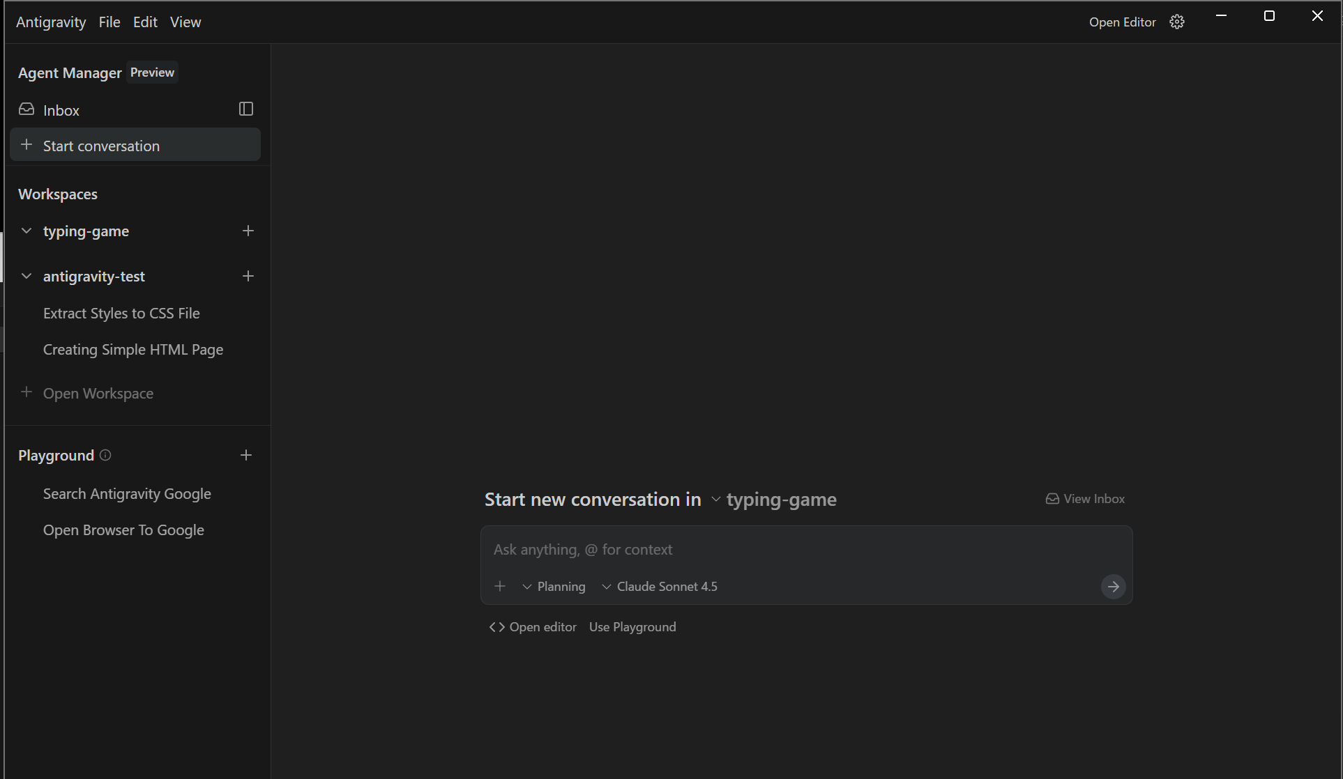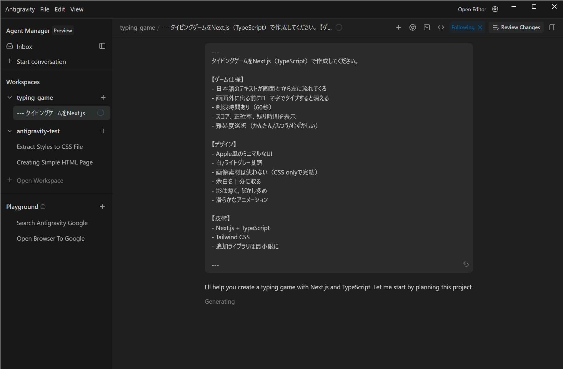 typing-game) - Antigravityでそのフォルダを開く
