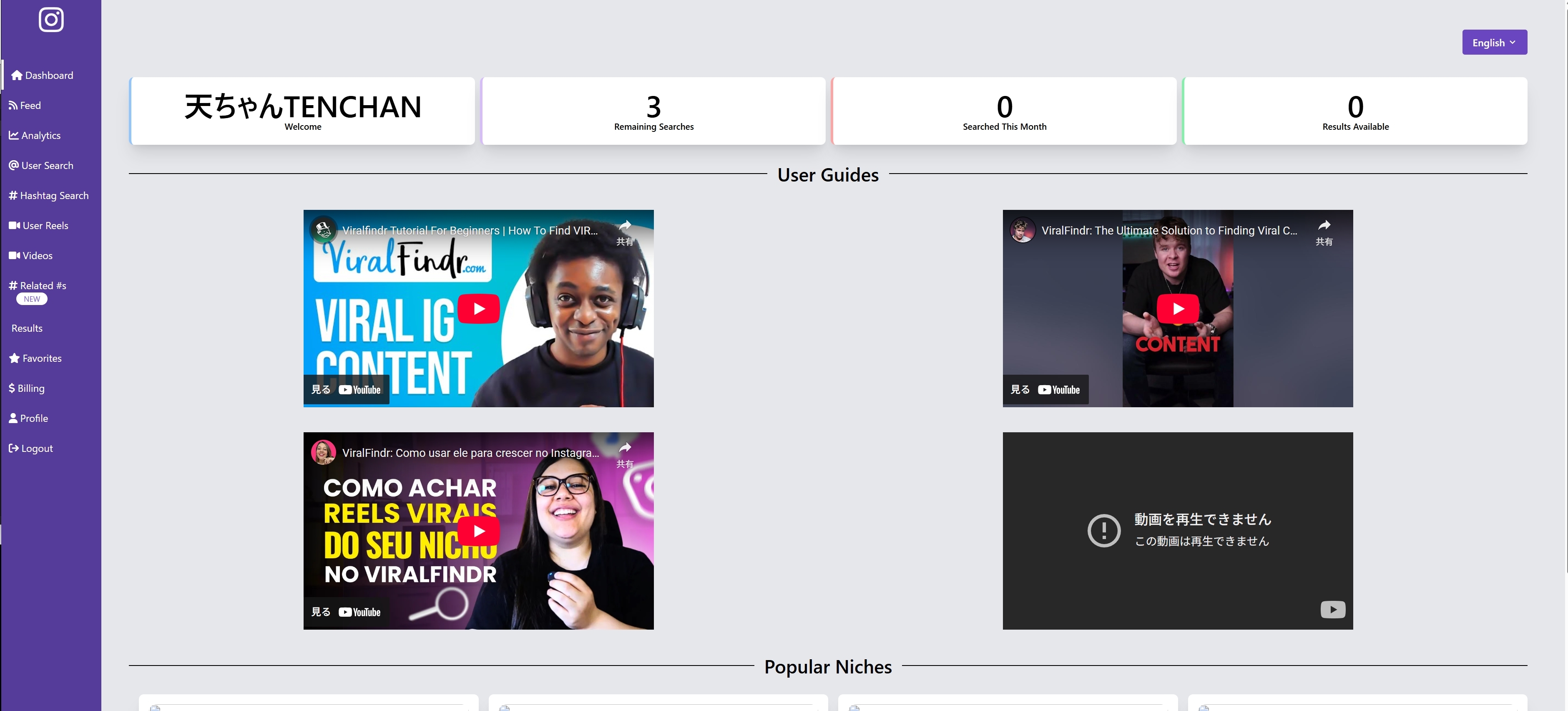 - ViralFindr Tutorial for Beginners(ダッシュボード内User Guides参照)