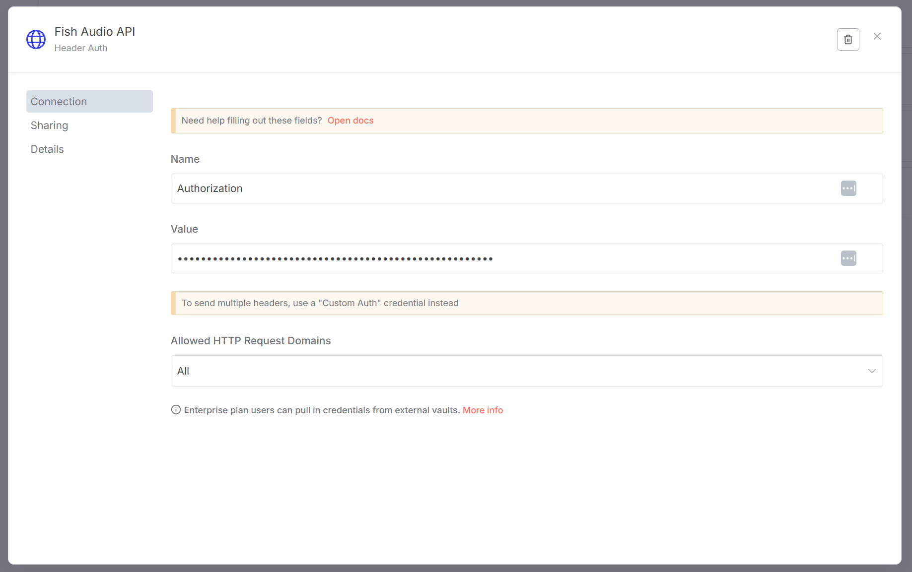 - n8nでFish Audio APIに接続するためのCredential設定