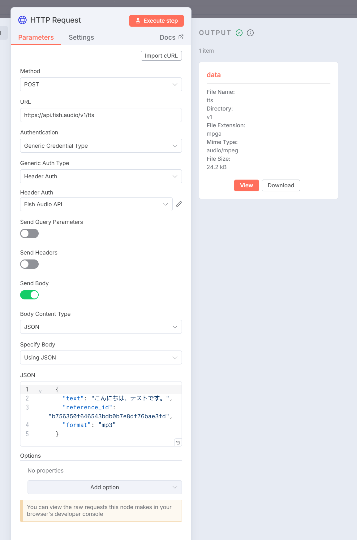 - n8nからFish Audio APIを呼び出して音声ファイルを生成できるようになった
