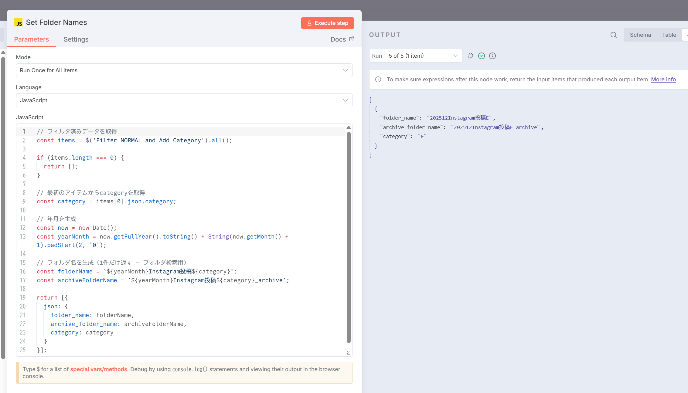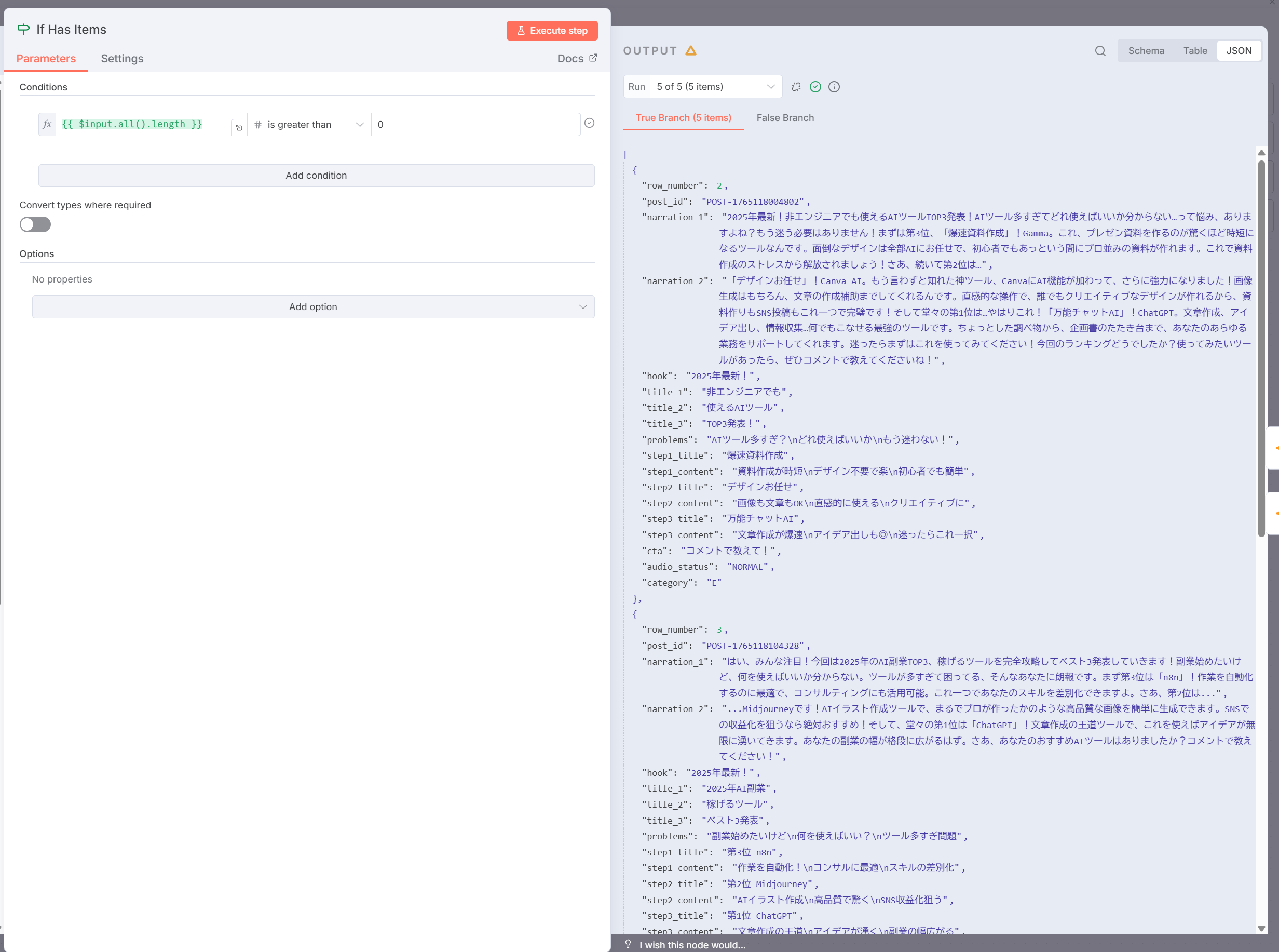 中編では単一カテゴリ(canva_A)のみを処理するワークフローを作成しました。後編では全カテゴリ(A〜E)に対応します。