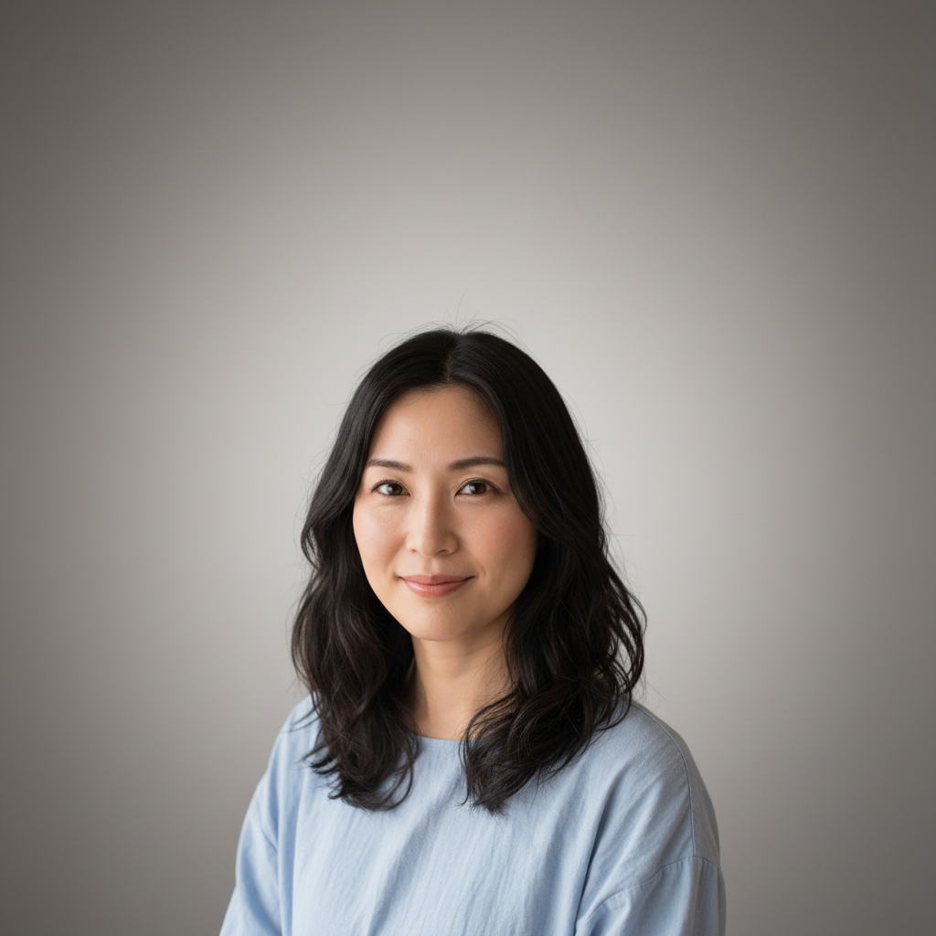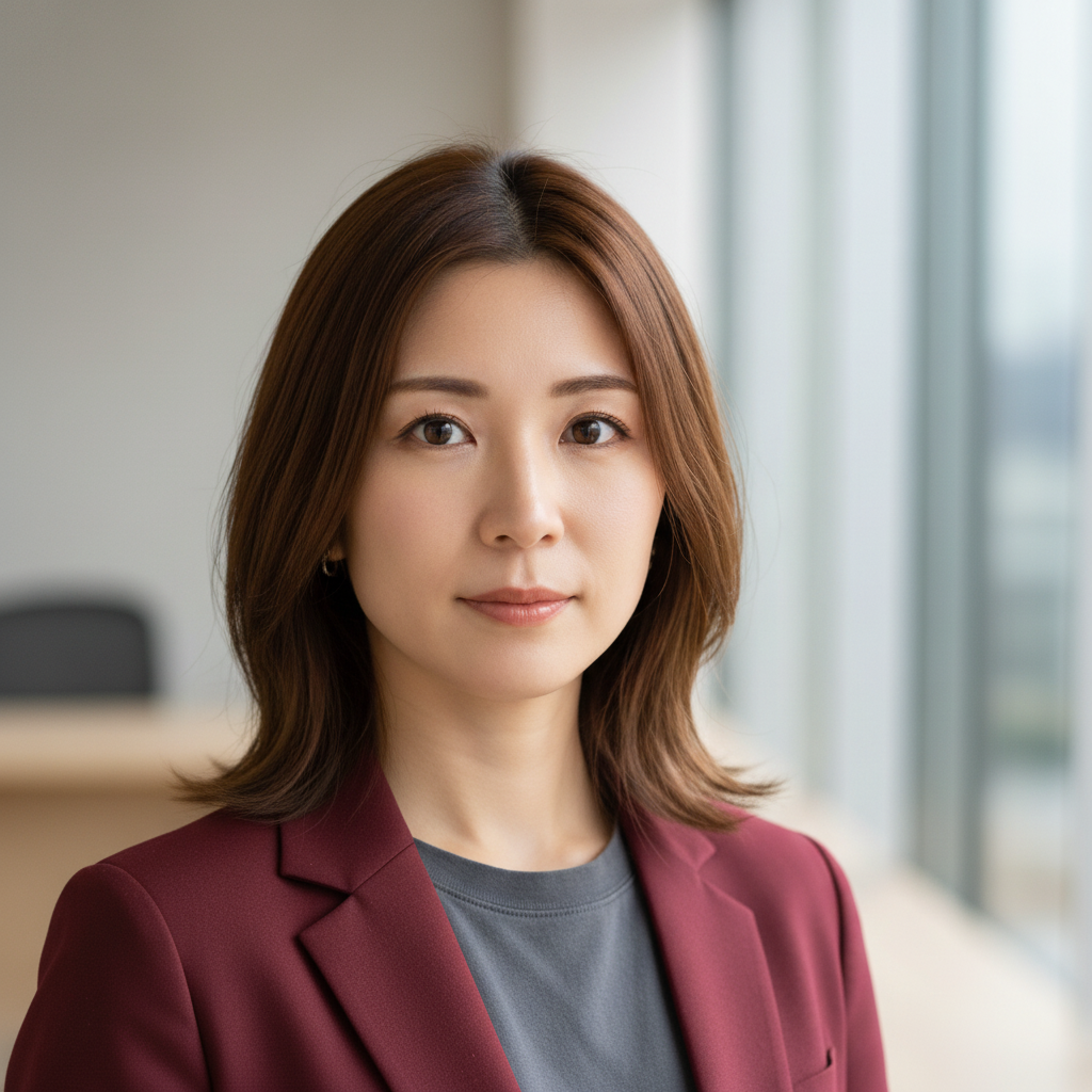| 笑顔 | Natural, warm smile (not exaggerated) | 自然で暖かい(大げさでない)笑顔 |